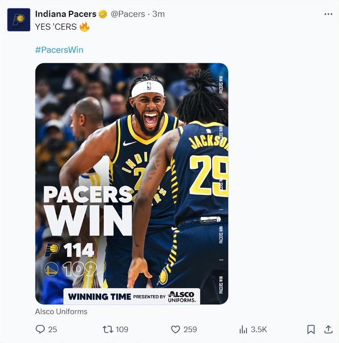 北京时间11月2日,步行者114-109逆转勇士拿到新赛季的首胜,目前1胜5负。这场比赛步行者一度落后勇士11分之多,可他们在末节完成了大逆转,拿着双向合同的昆廷-杰克逊成为整个印第安纳的英雄,他末节5中5拿到12分完爆斯蒂芬-库里。